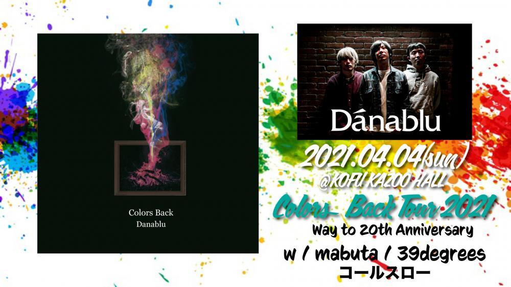 KAZOO HALL presentsWay to 20th Anniversary -Danablu Colors Back Tour 2021-OPEN 17:00 / START 変更前17:30→変更後18:00 adv ¥2800(D別) / day ¥3300(D別) [出演] |