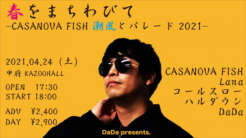 DaDa presents春を待ちわびて -CASANOVA FISH 潮風とパレード2021-OPEN 17:30 / START 18:00 adv ¥2400(D別) / day ¥2900(D別) |
