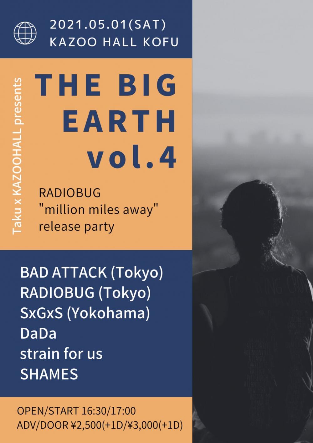 Taku x KAZOOHALL presents.THE BIG EARTH vol.4 -RADIOBUG "million miles away" release party-OPEN 16:30 / START 17:00 adv ¥2500(D別) / day ¥3000(D別) [出演] -チケット取扱い- |