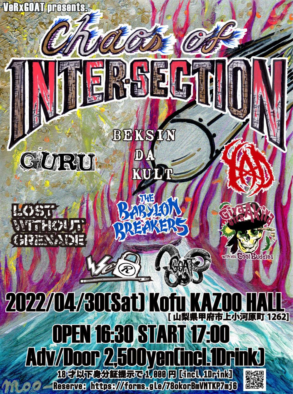 VeR x GOAT presentsChaos of intersectionOPEN 16:30 / START 17:00 adv ¥1900(D別) / day ¥1900(D別) [出演] [チケット取扱い] |