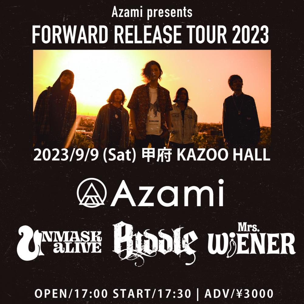 Azami presents"FORWARD" RELEASE TOUR 2023OPEN 17:00 / START 17:30 adv ¥3000(D別) / day ¥3500(D別) |
