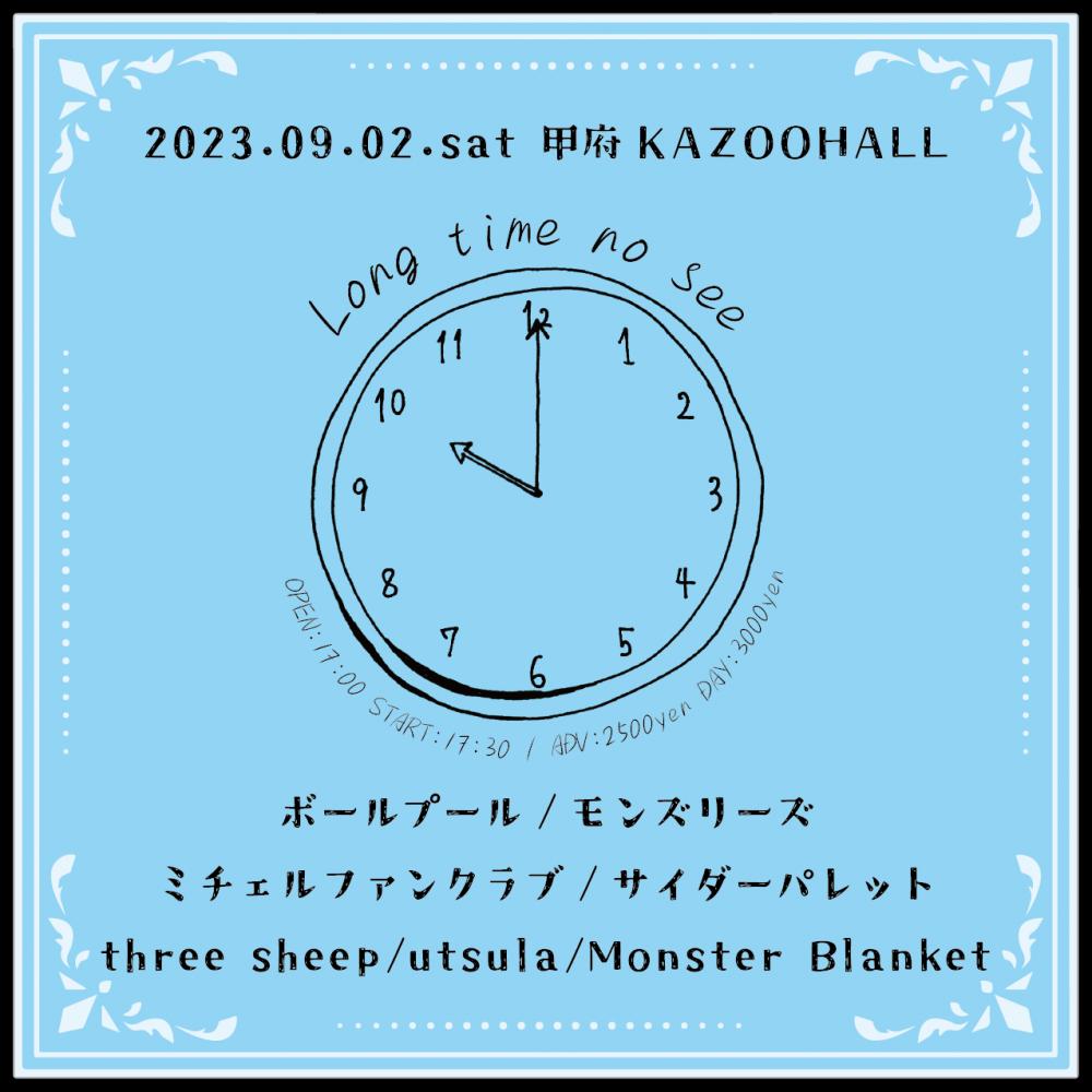 KAZOO HALL presentsLong time no seeOPEN 17:00 / START 17:30 adv ¥2500(D別) / day ¥3000(D別) [出演] [チケット取扱い] |