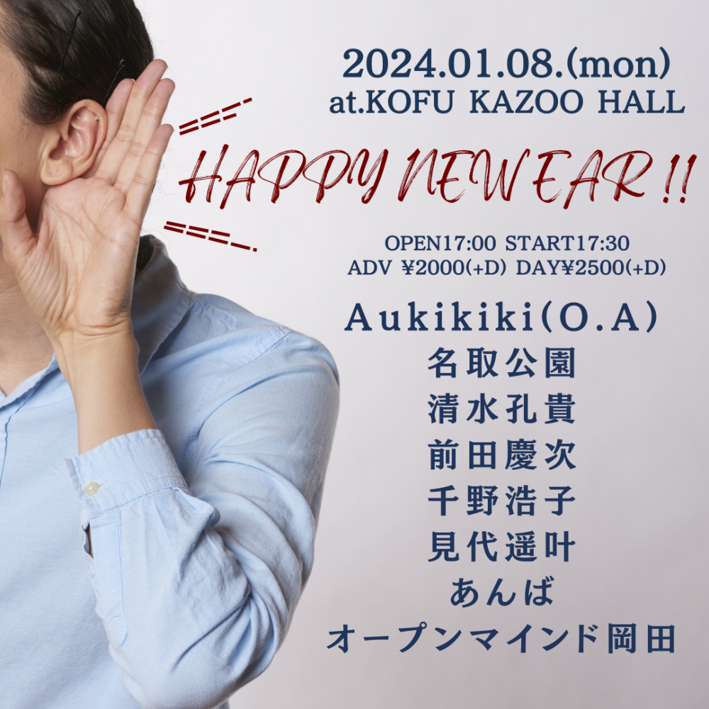 KAZOO HALL presentsHAPPY NEW EAR !!OPEN 17:00 / START 17:30 adv ¥2000(D別) / day ¥2500(D別) [出演] [チケット取扱い] |
