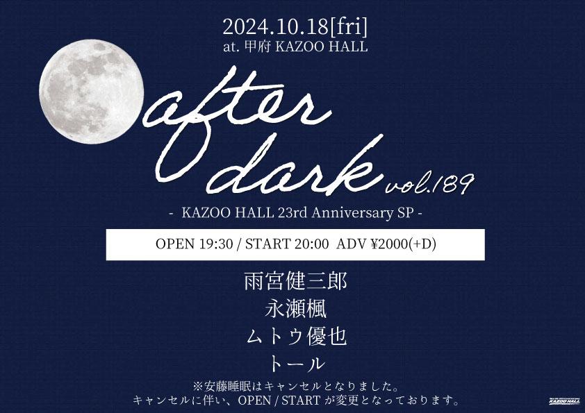 KAZOO HALL 23rd Anniversaryafter dark vol.189 -KAZOOHALL 23th Anniversary SP-OPEN 19:00 / START 19:30 adv ¥2000(D別) / day ¥2500(D別) [出演] [チケット取扱い] |