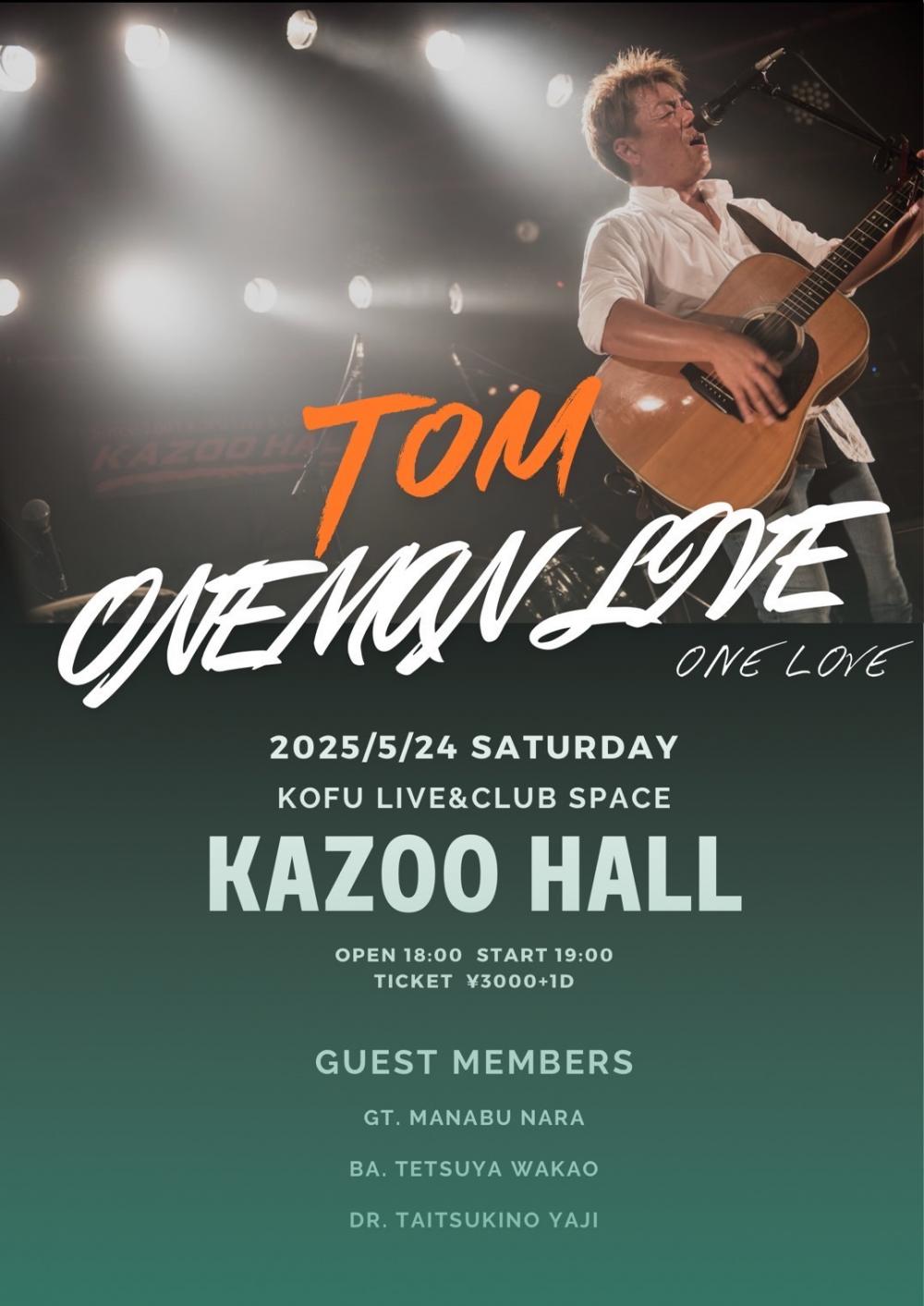 TOM ONEMAN LIVEONE LOVEOPEN 18:00 / START 19:00 adv ¥3000(D別) / day TBA [出演] [チケット取扱い] |
