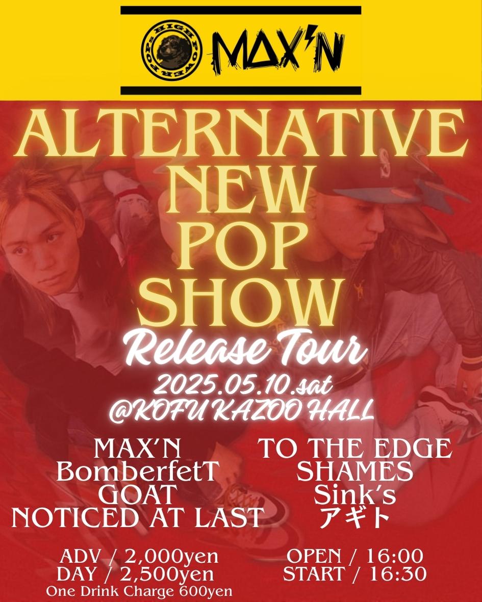 KAZOO HALL presentsThe Earth Defense Force chapter.82 - MAX'N [ALTERNATIVE NEW POP SHOW] Release Tour -OPEN 16:00 / START 16:30 adv ¥2000(D別) / day ¥2500(D別) [出演] [チケット取扱い] |