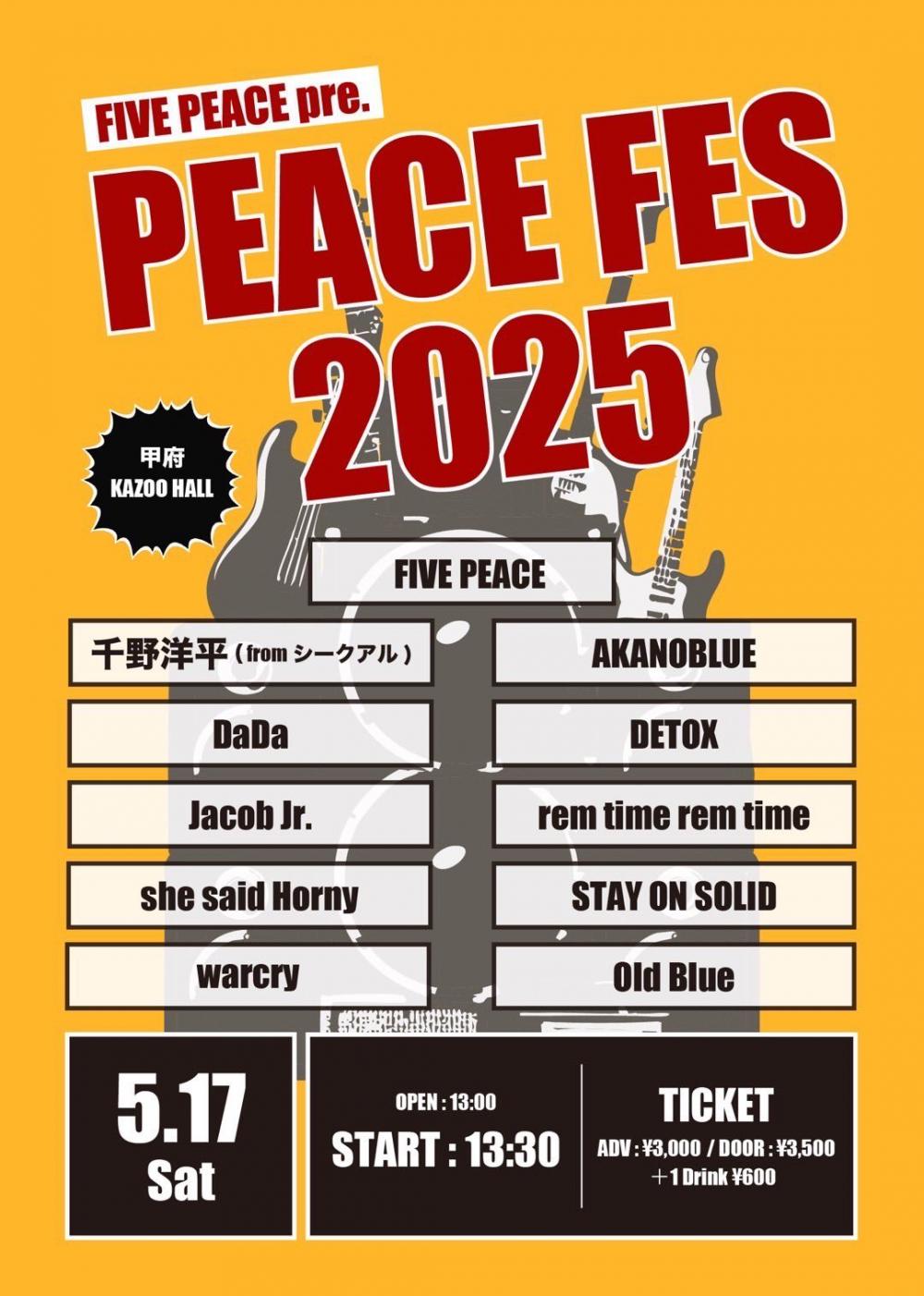 FIVE PEACE presentsPEACE FES 2025OPEN 13:00 / START 13:30 adv ¥3000(D別) / day ¥3500(D別) [出演] [チケット取扱い] |