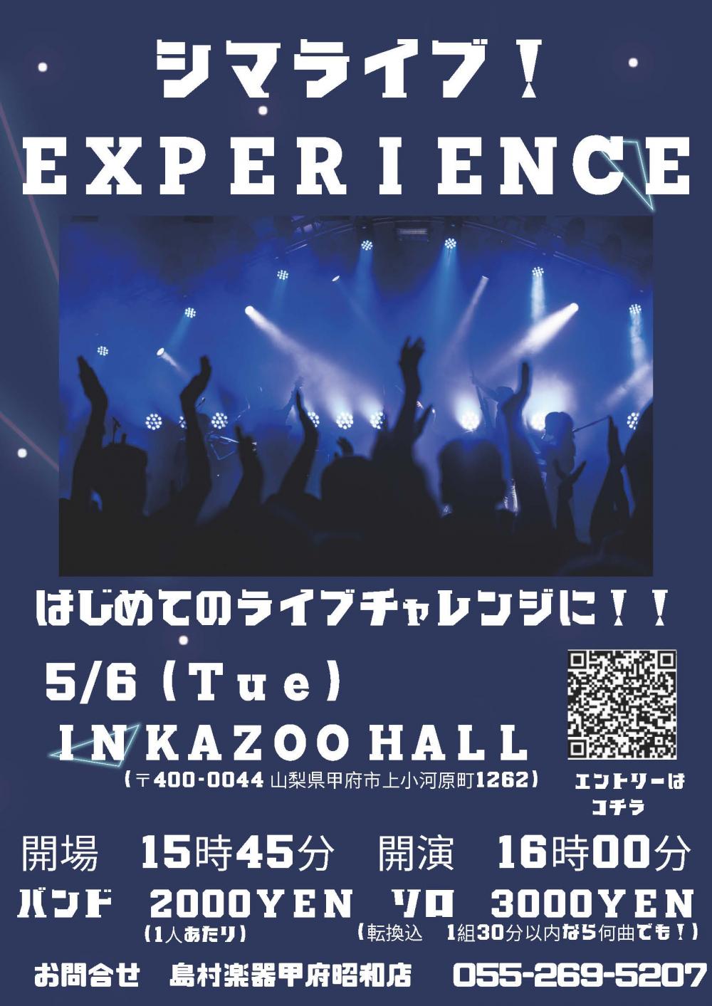 島村楽器イオンモール甲府昭和店 presentsシマライブ! EXPERIENCEOPEN 15:45 / START 16:00 adv FREE / day FREE [出演] (お問い合わせ) |
