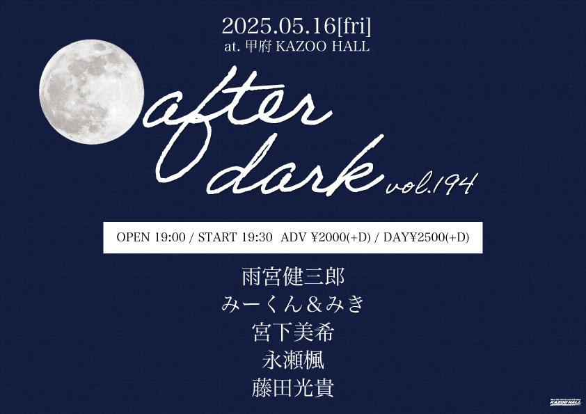 KAZOO HALL presentsafter dark vol.194OPEN 19:00 / START 19:30 adv ¥2000(D別) / day ¥2500(D別) [出演] [チケット取扱い] |
