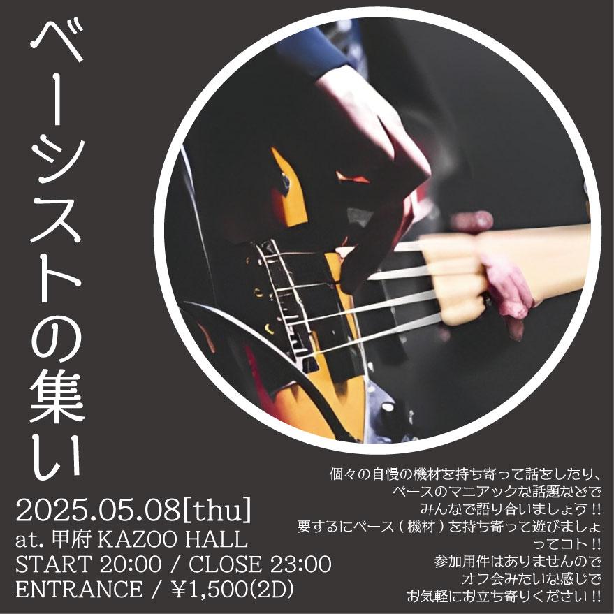 KAZOO HALL presentsベーシストの集いOPEN 20:00 / START 20:00 adv ¥1500(2D) / day ¥1500(2D) [出演] |