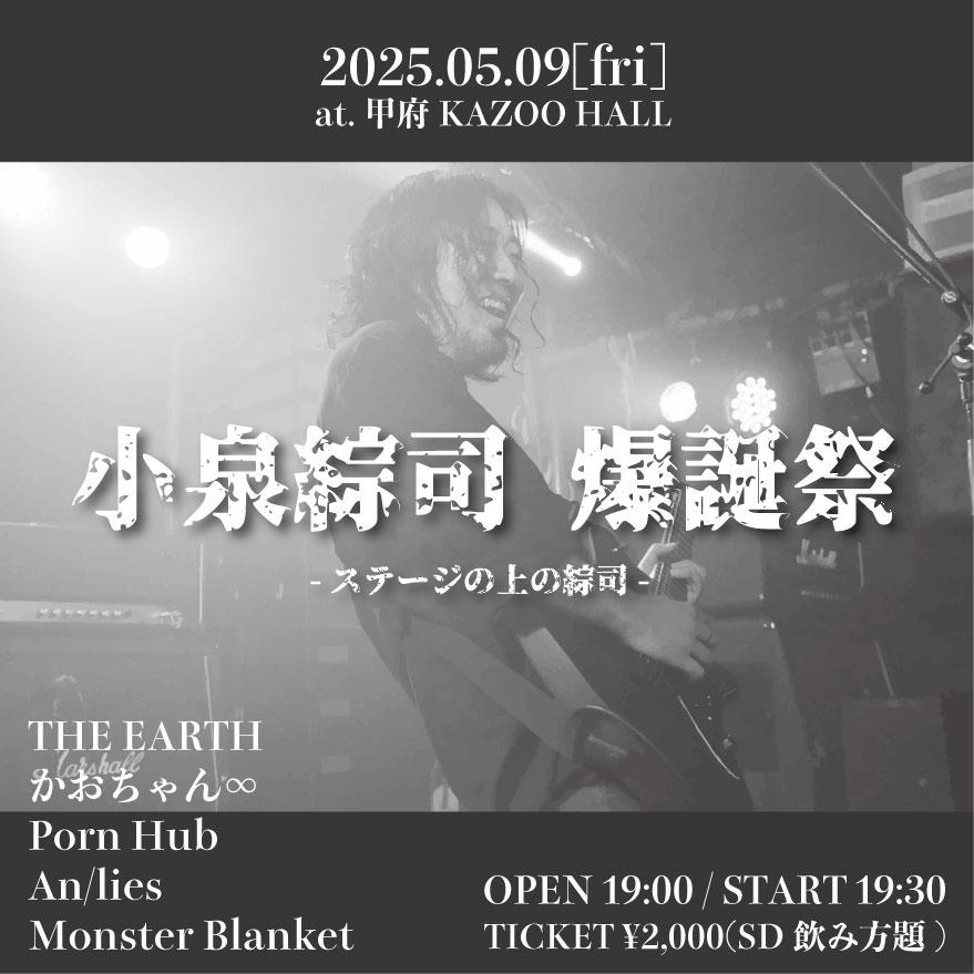 KAZOO HALL presents『小泉綜司 爆誕祭 -ステージの上の綜司-』OPEN 19:00 / START 19:30 adv ¥2000(SD飲み放題) / day ¥2000(SD飲み放題) [出演] [チケット取扱い] |