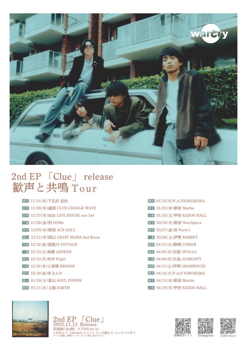 warcry presents2nd EP「clue」release 歓声と共鳴 TOUR FINALOPEN TBA / START TBA adv TBA / day TBA |