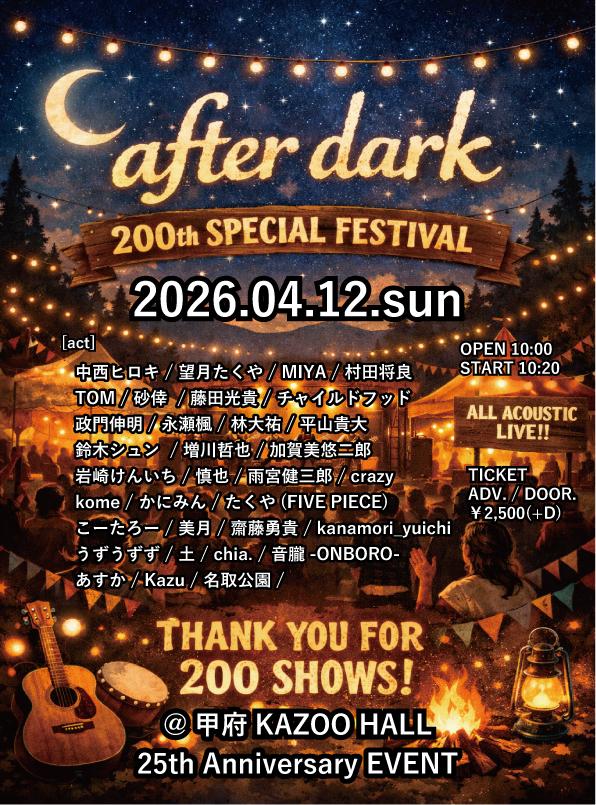 KAZOO HALL SPECIAL EVENT & KAZOO HALL 25th Anniversaryafter dark vol.200 -ACOUSTIC FES. ver.-OPEN 10:00 / START 10:20 adv ¥2500(D別) / day ¥2500(D別) [出演] [チケット取扱い] |