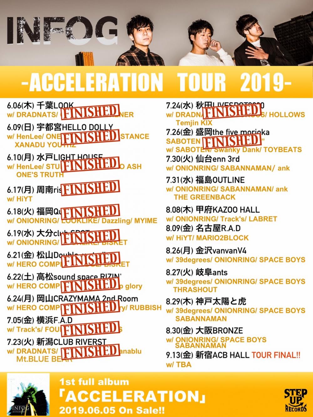 INFOG "ACCELERATION TOUR 2019"OPEN 18:00 / START 18:30 adv ¥2500(D別) / day ¥3000(D別) [出演] -チケット取扱い- |