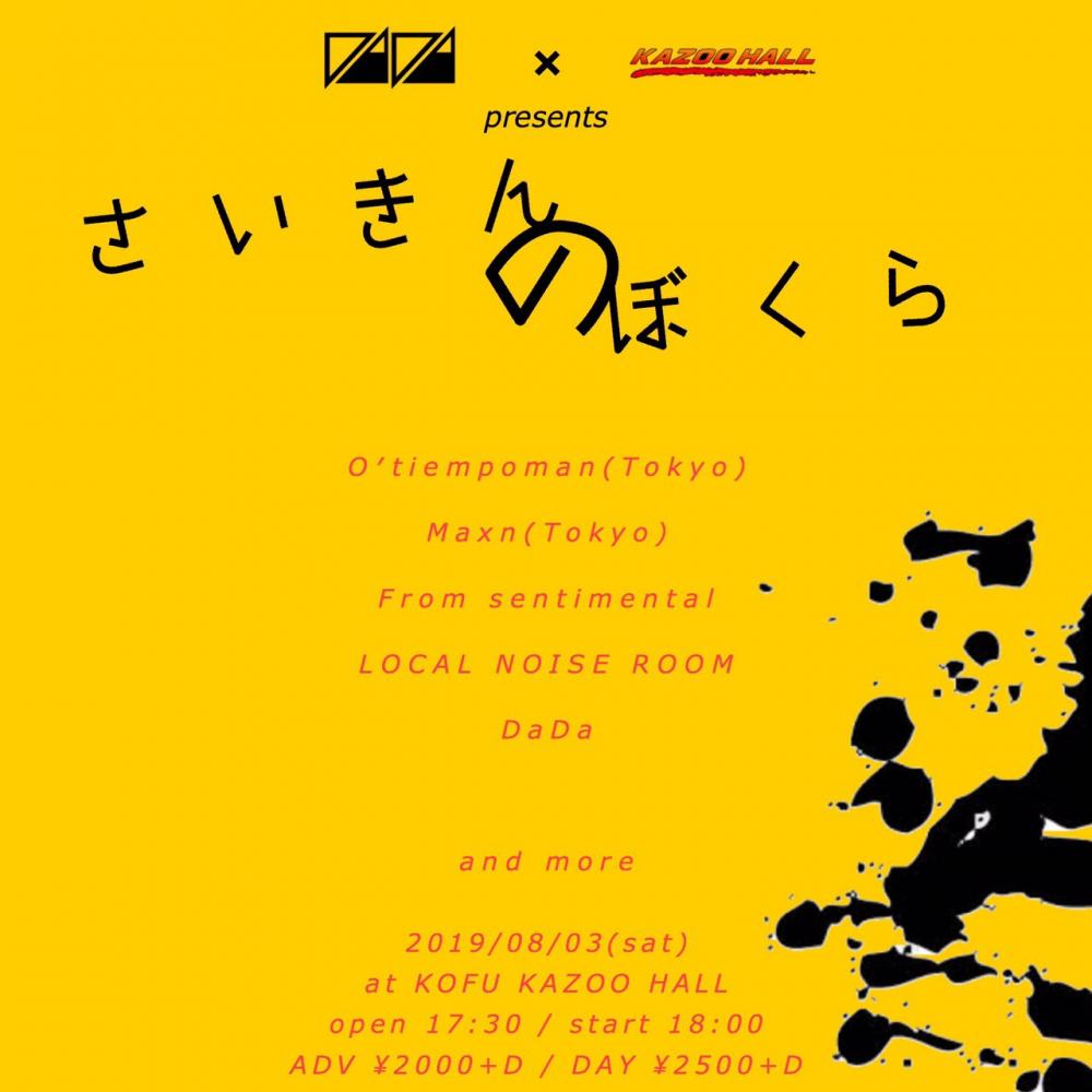 DaDa x KAZOO HALL presentsさいきんのぼくらOPEN 17:30 / START 18:00 adv ¥2000(D別) / day ¥2500(D別) [出演] チケット取扱い:各出演バンド / KAZOO HALL:TEL 055-243-7069 |