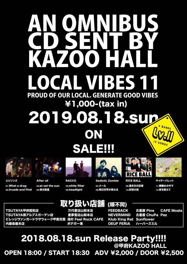 KAZOO HALL presentsLOCAL VIBES レコ発パーティー!!OPEN 18:00 / START 18:30 adv ¥2000(D別) / day ¥2500(D別) [出演] チケット取扱い:各出演バンド / KAZOO HALL:TEL 055-243-7069 |