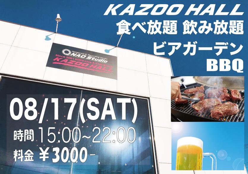 KAZOO HALL presents真夏のビアガーデン祭り!OPEN 15:00 / START 15:00 adv ¥3000-(飲み食べ放題) / day ¥3000-(飲み食べ放題) [出演] |