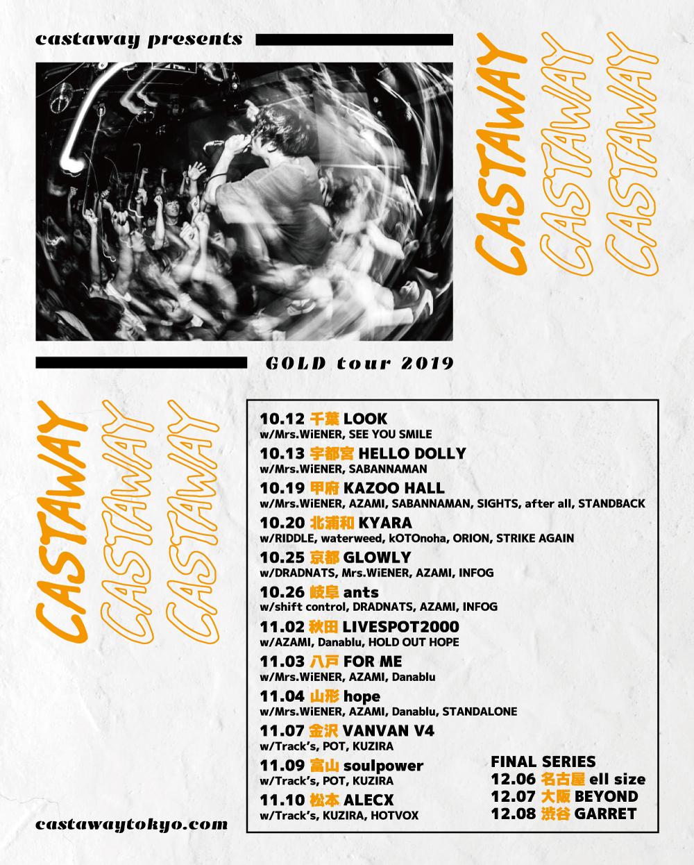Castaway presentsGOLD tourOPEN 17:00 / START 17:30 adv ¥2000(D別) / day ¥2500(D別) [出演] -チケット取扱い- |