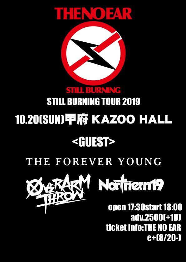 KAZOO HALL 18th AnniversaryTHE NO EAR "STILL BURNING TOUR 2019" & THE FOREVER YOUNG "ビューティフルユース TOUR 2019"OPEN 17:30 / START 18:00 adv ¥2500(D別) / day ¥3000(D別) [出演] -チケット取扱い- |