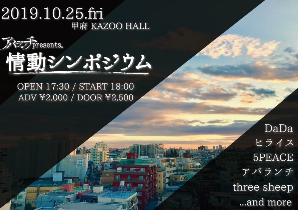 KAZOO HALL 18th Anniversaryアバランチ presents 情動シンポジウムOPEN 17:30 / START 18:00 adv ¥2000(D別) / day ¥2500(D別) [出演] -チケット取扱い- |