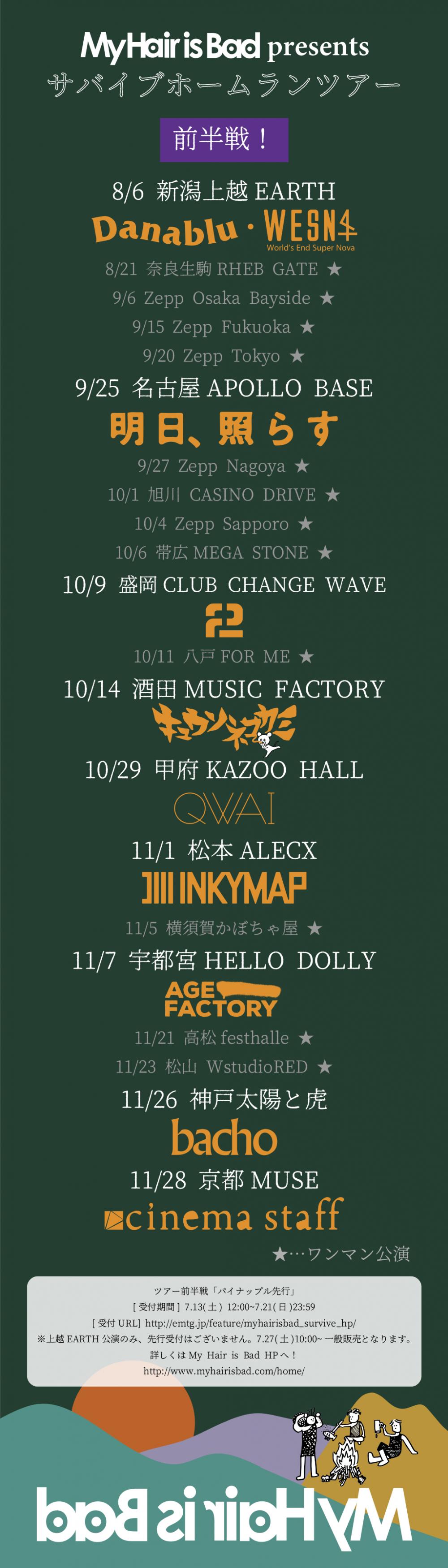 KAZOO HALL 18th AnniversaryMy Hair is Bad presents「サバイブホームランツアー」OPEN 18:30 / START 19:00 adv ※Thank you! SOLD OUT!!! / day ※Thank you! SOLD OUT!!! [出演] -チケット取扱い- |
