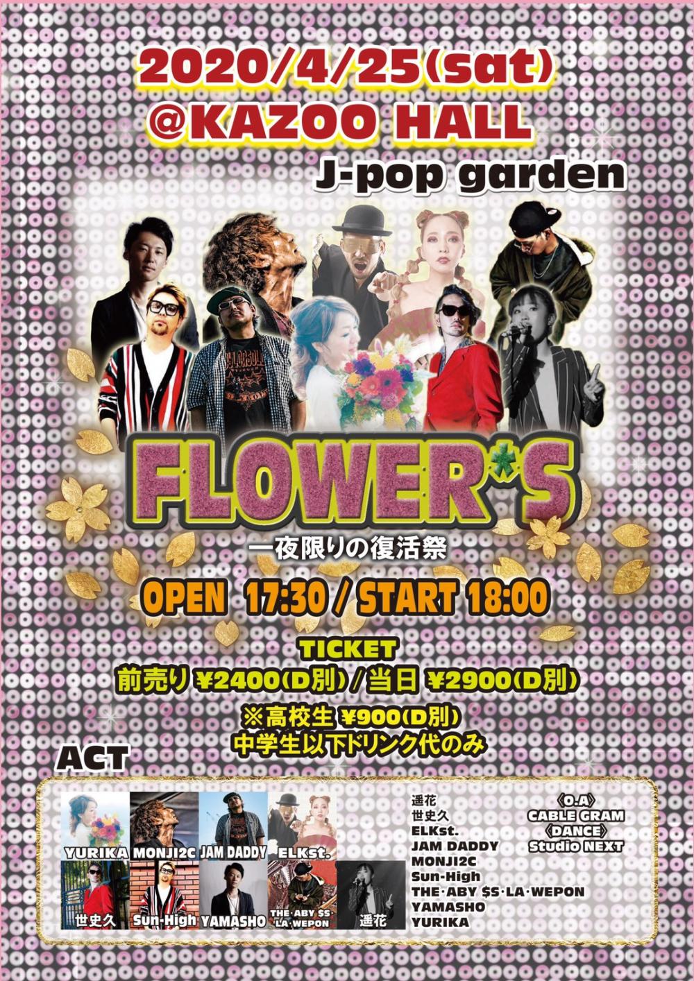 J-pop garden FLOWER*S 〜一夜限りの復活祭〜OPEN 未定 / START 未定 adv ※延期 / day ※延期 [出演] |