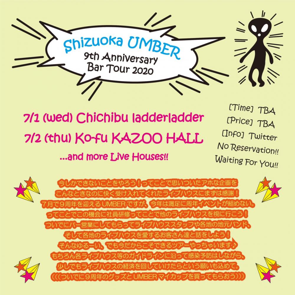 KAZOO HALL presents静岡UMBER 9th Anniversary BAR TOUROPEN 19:00 / START 19:00 adv BAR営業 / day BAR営業 [出演] |