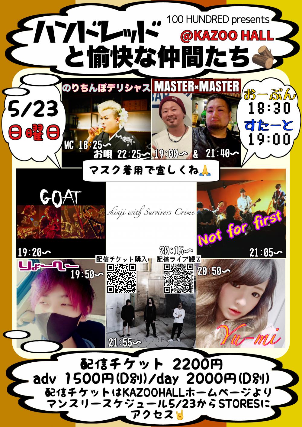 100 HUNDRED presentsハンドレッドと愉快な仲間たちOPEN 18:30 / START 19:00 adv ¥1500(D別) / day ¥2000(D別) [出演] [チケット取扱い] |