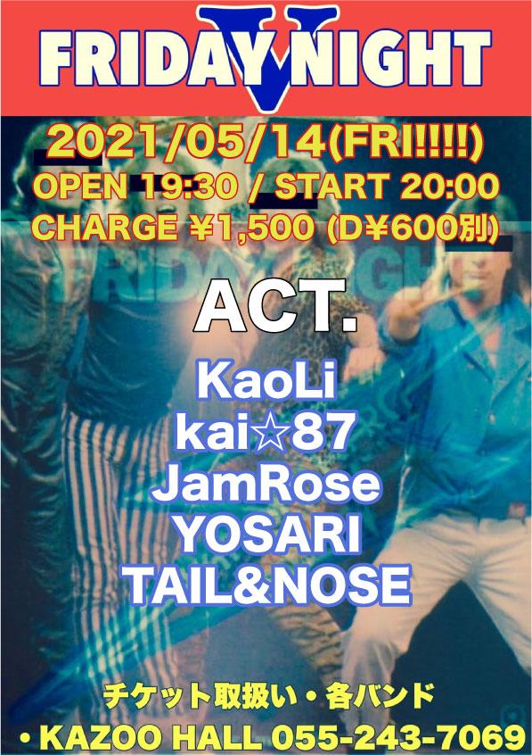 KAZOO HALL presentsFAKE THE ROCK STAR -Acoustic-OPEN 19:00 / START 19:30 adv ¥2000(2D) / day ¥2000(2D) [出演] チケット取扱い:各出演バンド / KAZOO HALL:TEL 055-243-7069 |
