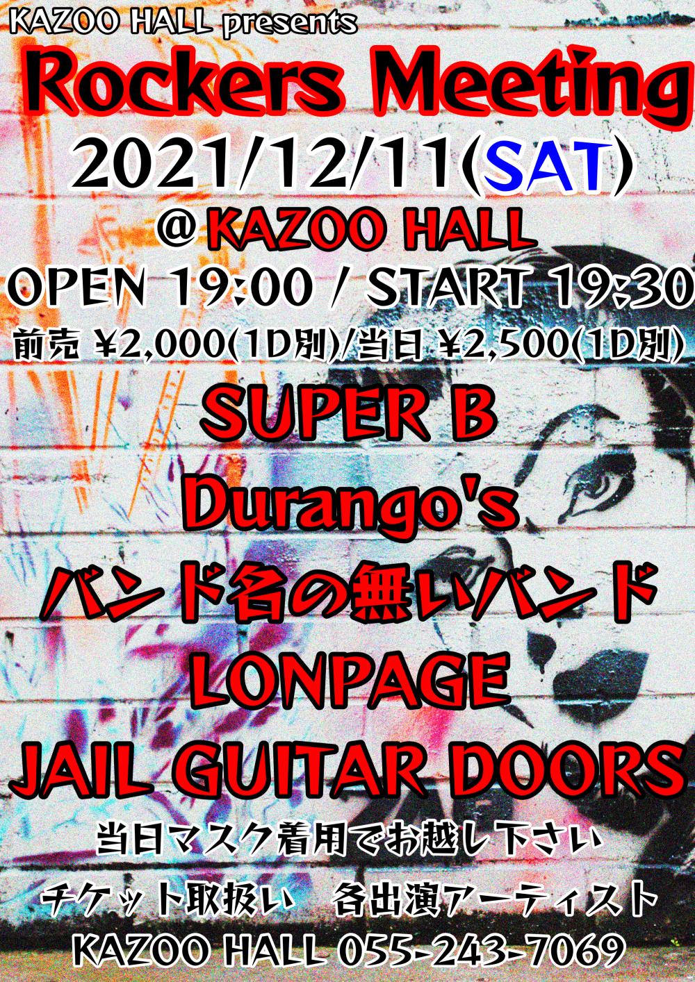KAZOO HALL presentsRockers MeetingOPEN 19:00 / START 19:30 adv ¥2000(D別) / day ¥2500(D別) [出演] [チケット取扱い] |