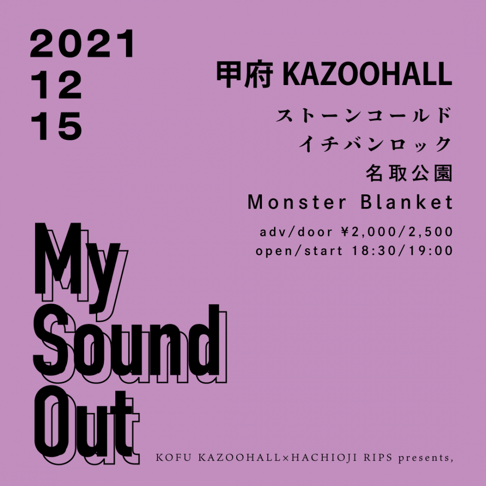 KAZOO HALL x 八王子RIPS presentsMy Sound Out vol.1OPEN 18:30 / START 19:00 adv ¥2000(D別) / day ¥2500(D別) [出演] [チケット取扱い] |