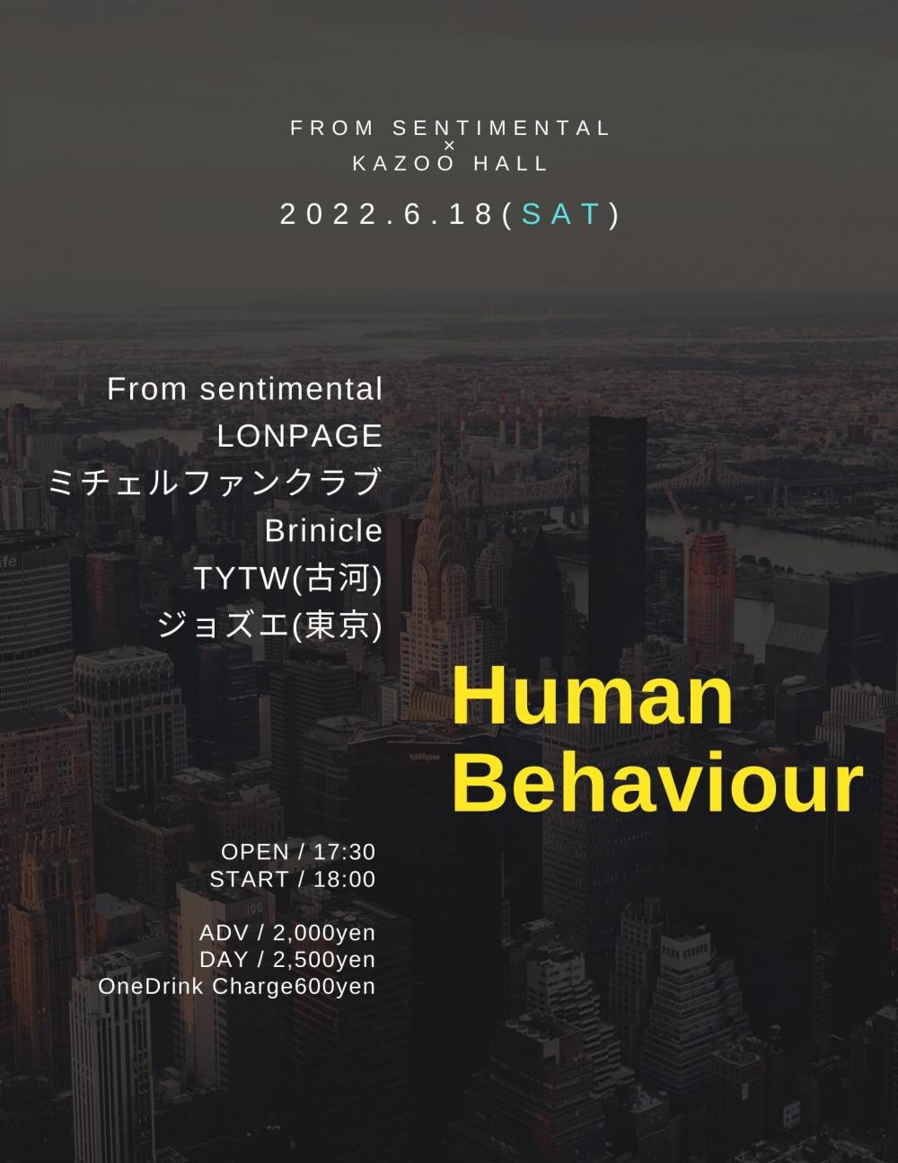 From sentimental × KAZOO HALL presentsHuman BehaviourOPEN 17:30 / START 18:00 adv ¥2000(D別) / day ¥2500(D別) [出演] [チケット取扱い] |