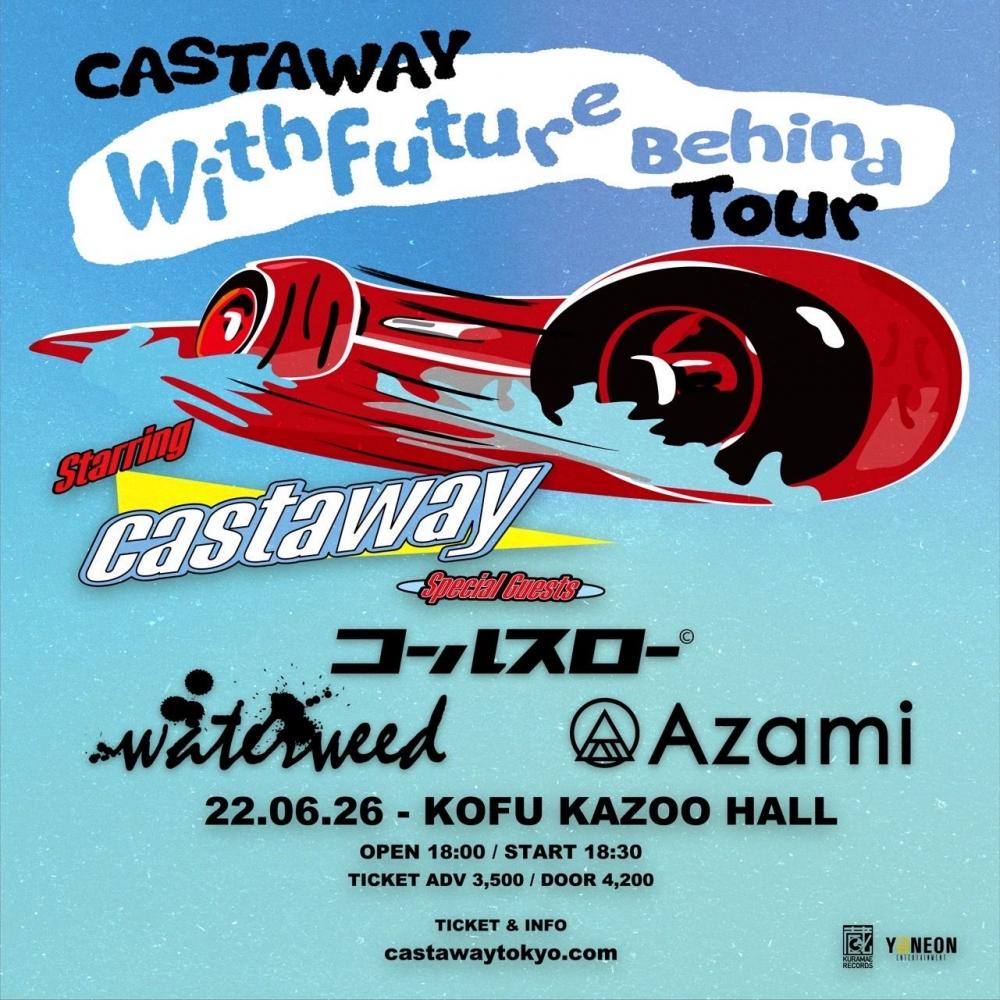 Y금NEON ENTERTAINMENT presentsCastaway "With Future Behind TOUR 2022"OPEN 18:00 / START 18:30 adv ¥3500(D別) / day ¥4200(D別) [出演] [一般チケット発売] |