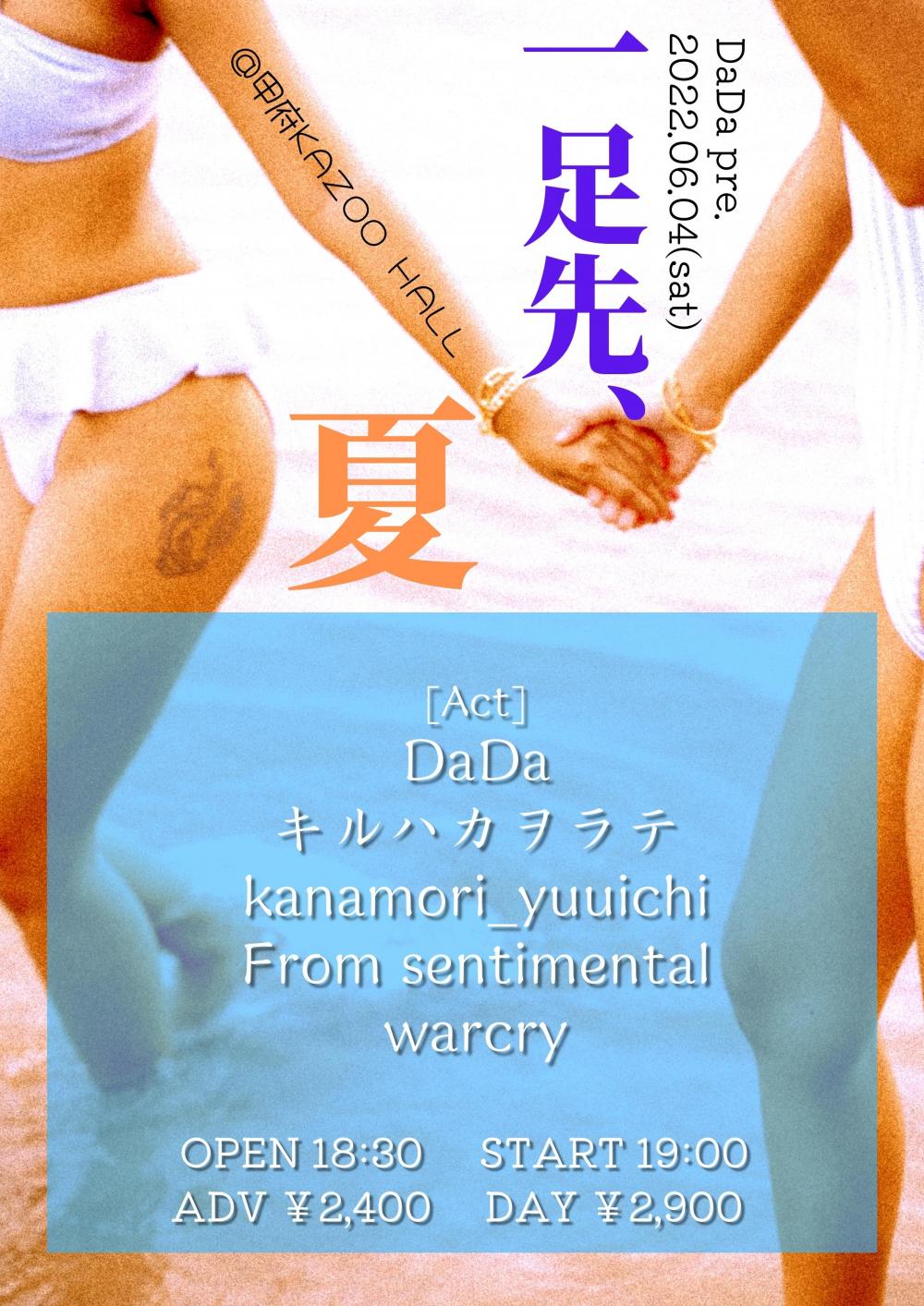 DaDa presents一足先、夏OPEN 18:30 / START 19:00 adv ¥2400(D別) / day ¥2900(D別) [出演] [チケット取扱い] |