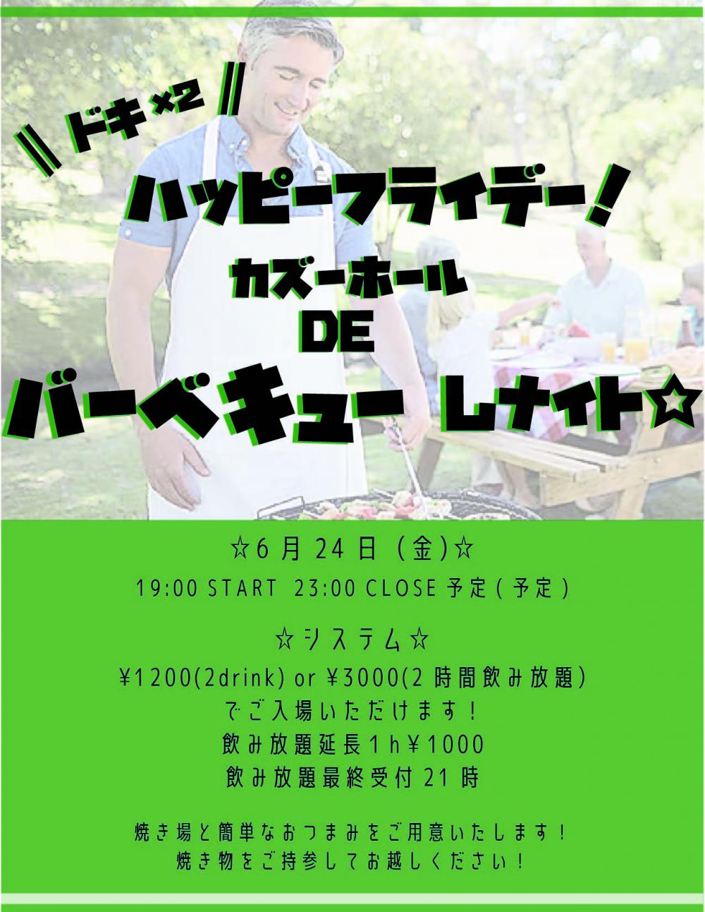 ハッピーフライデー!カズーホールDE バーベキューしナイト☆OPEN 19:00 / START 19:00 adv ¥1200(2D) or ¥3000(2時間飲み放題) / day ¥1200(2D) or ¥3000(2時間飲み放題) [出演] |
