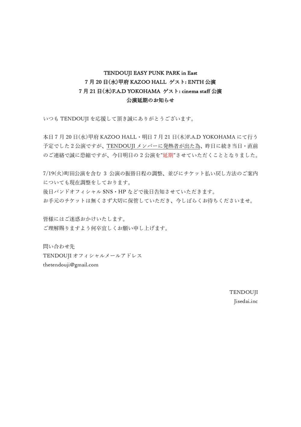 天童児 presentsEASY PUNK PARK in EastOPEN ※延期 / START ※延期 adv ※延期 / day ※延期 [出演] [チケットに関して] |