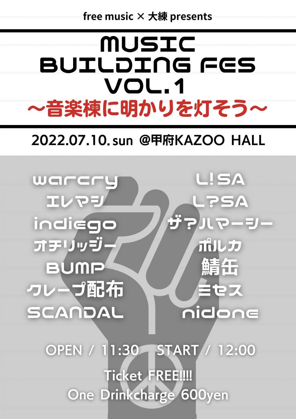 free music × 大練 presentsMusic Building Fes vol.1OPEN 11:30 / START 12:00 adv 無料(D別) / day 無料(D別) [出演] [チケット取扱い] |