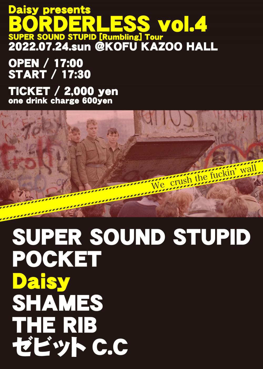 Daisy presentsBORDERLESS vol.4 SUPER SOUND STUPID[Rumbling]TourOPEN 17:00 / START 17:30 adv ¥2000(D別) / day ¥2000(D別) [出演] [チケット取扱い] |