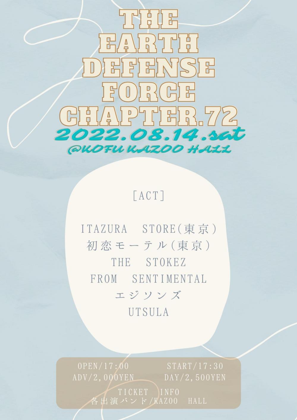 KAZOO HALL presentsThe Earth Defense Force chapter.72OPEN 17:00 / START 17:30 adv ¥2000(D別) / day ¥2500(D別) [出演] [チケット取扱い] |