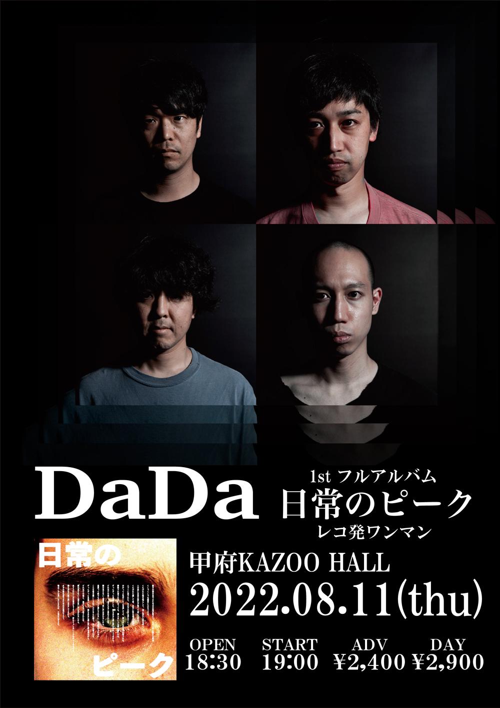 DaDa presents『日常のピーク』 1st Full Album レコ発ワンマンOPEN 18:30 / START 19:00 adv ¥2400(D別) / day ¥2900(D別) [出演] [チケット取扱い] |