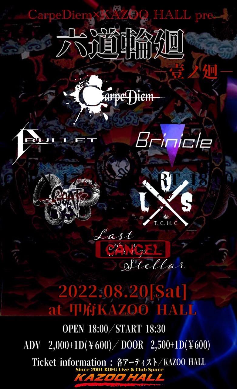 CarpeDiem × KAZOO HALL presents六道輪廻-壹ノ廻-OPEN 18:00 / START 18:30 adv ¥2000(D別) / day ¥2500(D別) [出演] [チケット取扱い] |