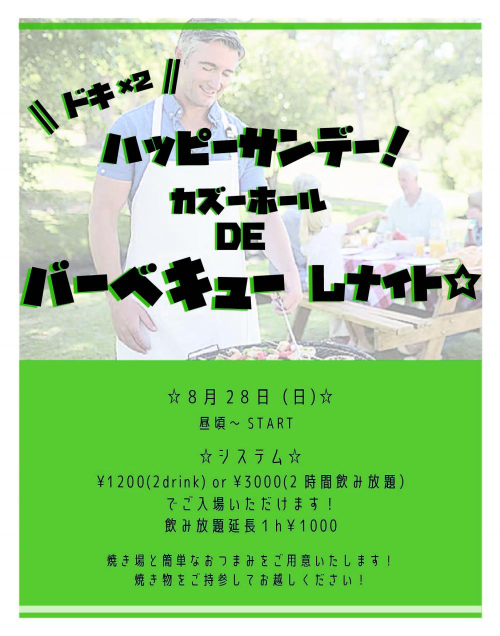 KAZOO HALL presentsハッピーサンデー!カズーホールDE バーベキューしナイト☆OPEN 13:00 / START 13:00 adv ¥1200(2drink) / day ¥1200(2drink) [出演] |