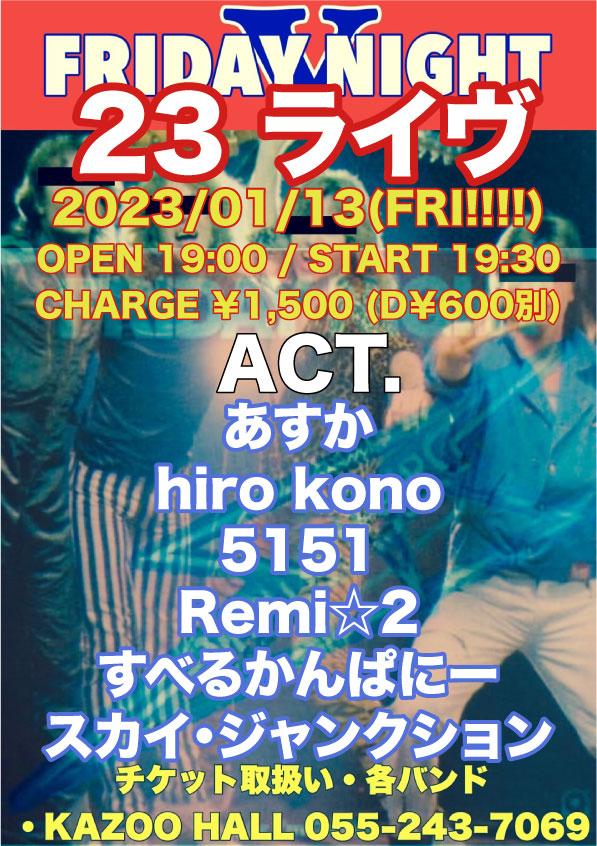 二宮喜之 x KAZOO HALL presentsFRIDAY NIGHT V 23ライヴOPEN 19:00 / START 19:30 adv ¥1500(D別) / day ¥1500(D別) [出演] -チケット取り扱い- |