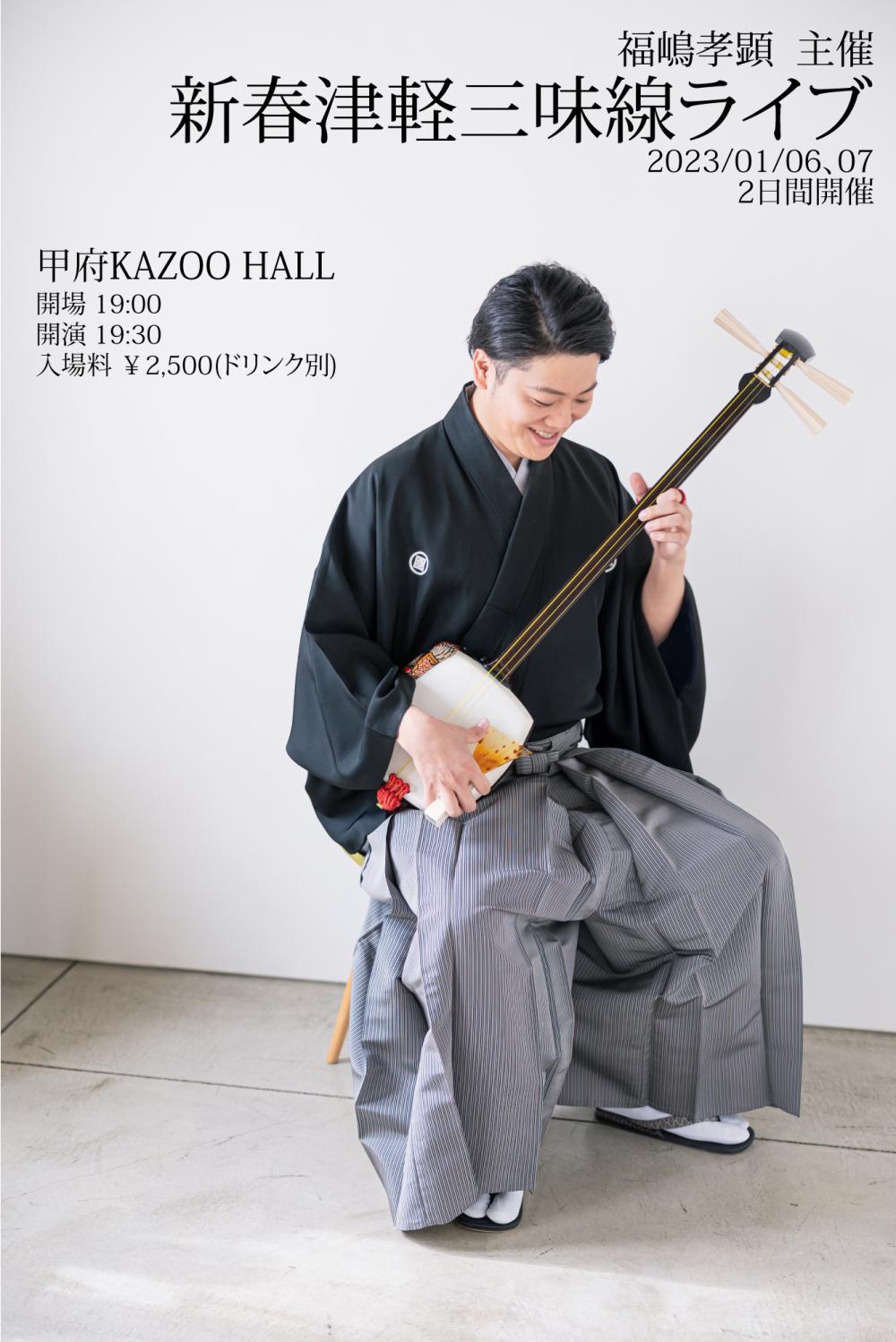 福嶋孝顕 presents新春津軽三味線ライブOPEN 19:00 / START 19:30 adv ¥2500(D別) / day TBA [出演] -チケット取り扱い- |