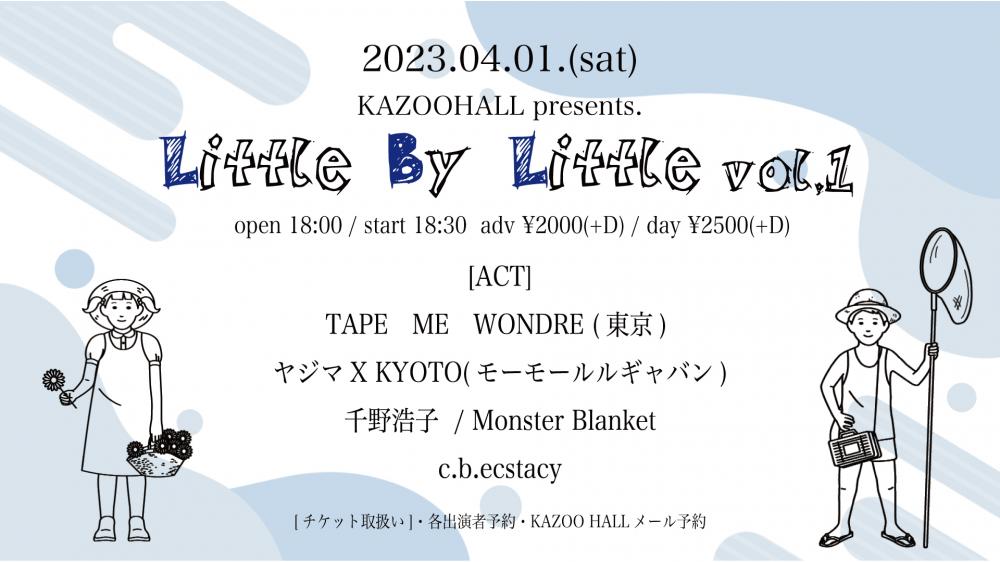 KAZOO HALL presentsLittle By Little vol.1OPEN 18:00 / START 18:30 adv ¥2000(D別) / day ¥2500(D別) [出演] [チケット取扱い] |