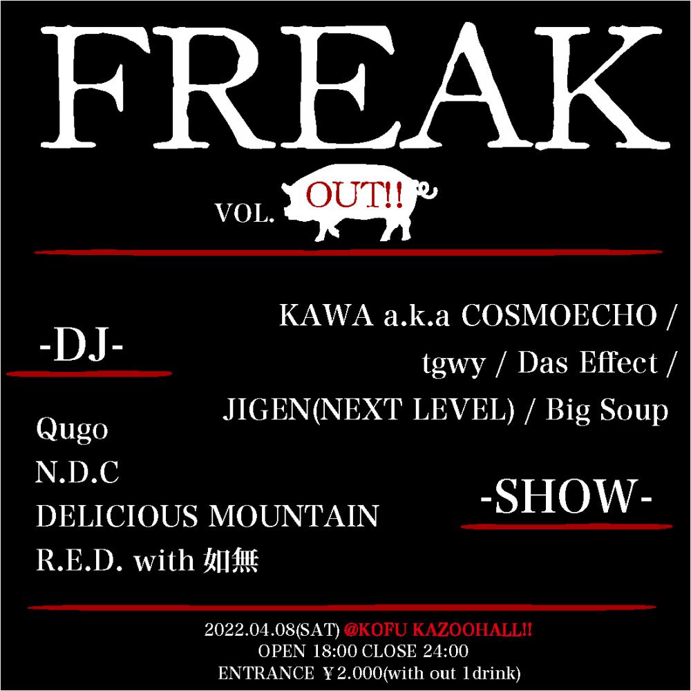 TEAM FREAK presentsFREAK vol.OUT!!OPEN 18:00 / START 18:00 adv ¥2000(D別) / day ¥2000(D別) [出演] [チケット取扱い] |