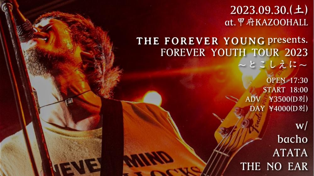 THE FOREVER YOUNG presentsFOREVER YOUTH TOUR 2023 ~とこしえに~OPEN 17:30 / START 18:00 adv ¥3500(D別) / day ¥4000(D別) [出演] [チケット取扱い] |