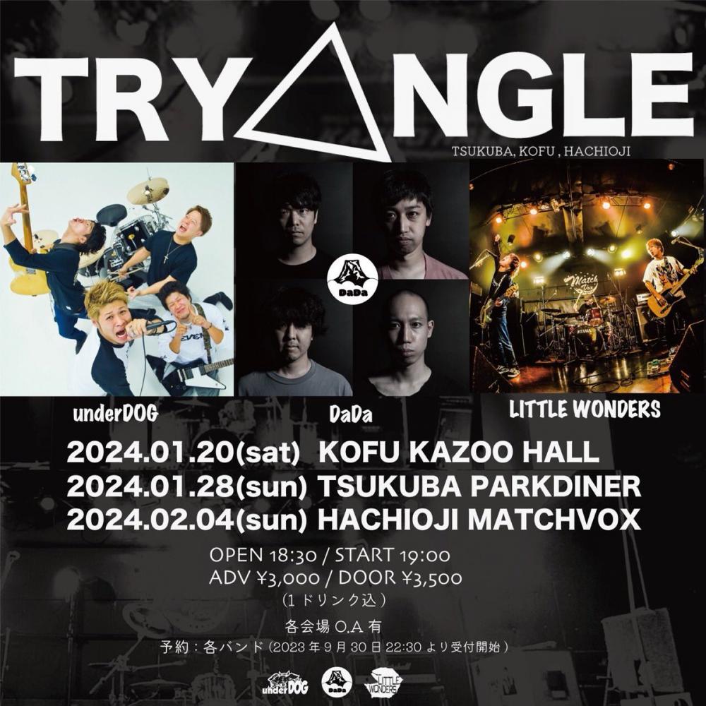 DaDa × underDOG × LITTLE WONDERS presentsTRYANGLEOPEN 18:30 / START 19:00 adv ¥3000(D込) / day ¥3500(D込) [出演] [チケット取扱い] |