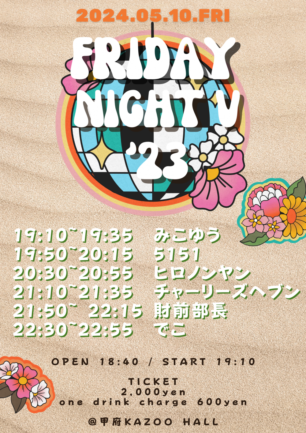 KAZOO HALL presentsFRIDAY NIGHT V '23OPEN 18:40 / START 19:10 adv ¥2000(D別) / day ¥2000(D別) [出演] [チケット取扱い] |