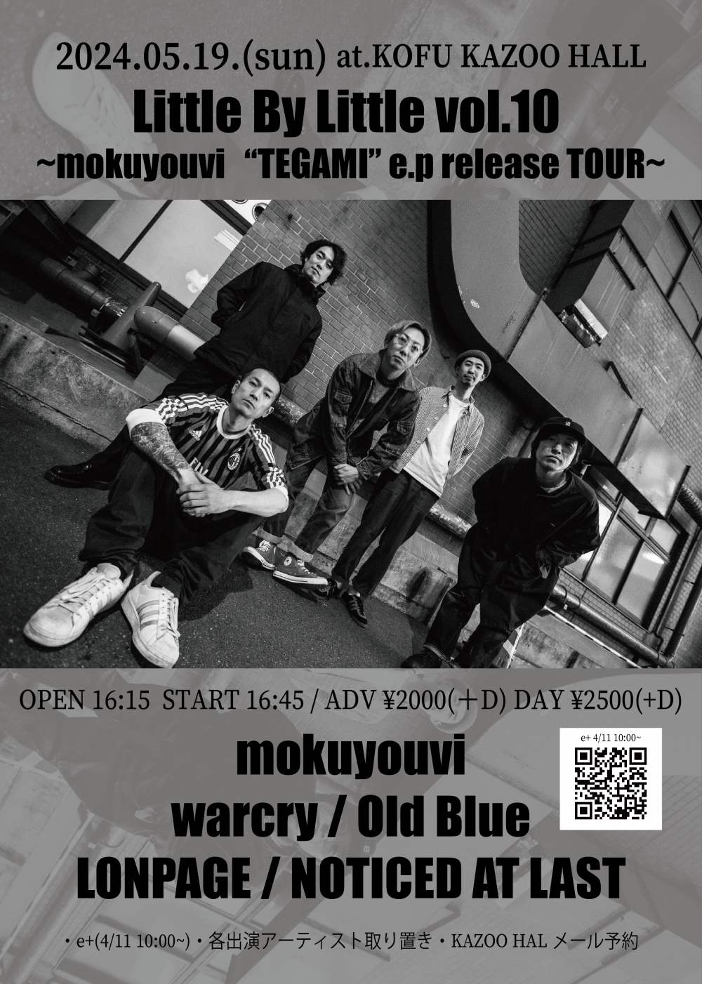 KAZOO HALL presentsLittle By Little vol.10 -mokuyouvi“TEGAMI”e.p releaseTOUR-OPEN 16:15 / START 16:45 adv ¥2000(D別) / day ¥2500(D別) [出演] [チケット取扱い] |